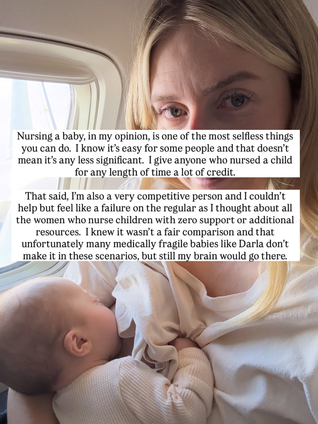 Roth begins at a place of gratitude and optimism, writing that she was relieved to have delivered Darla safely and hopeful nursing would go better this time. She explained, “I exclusively pumped for a year with Hazel.” That line alone reframes everything. This wasn’t her first hard season — it was her second, and she still walked into it hoping for a different outcome.
