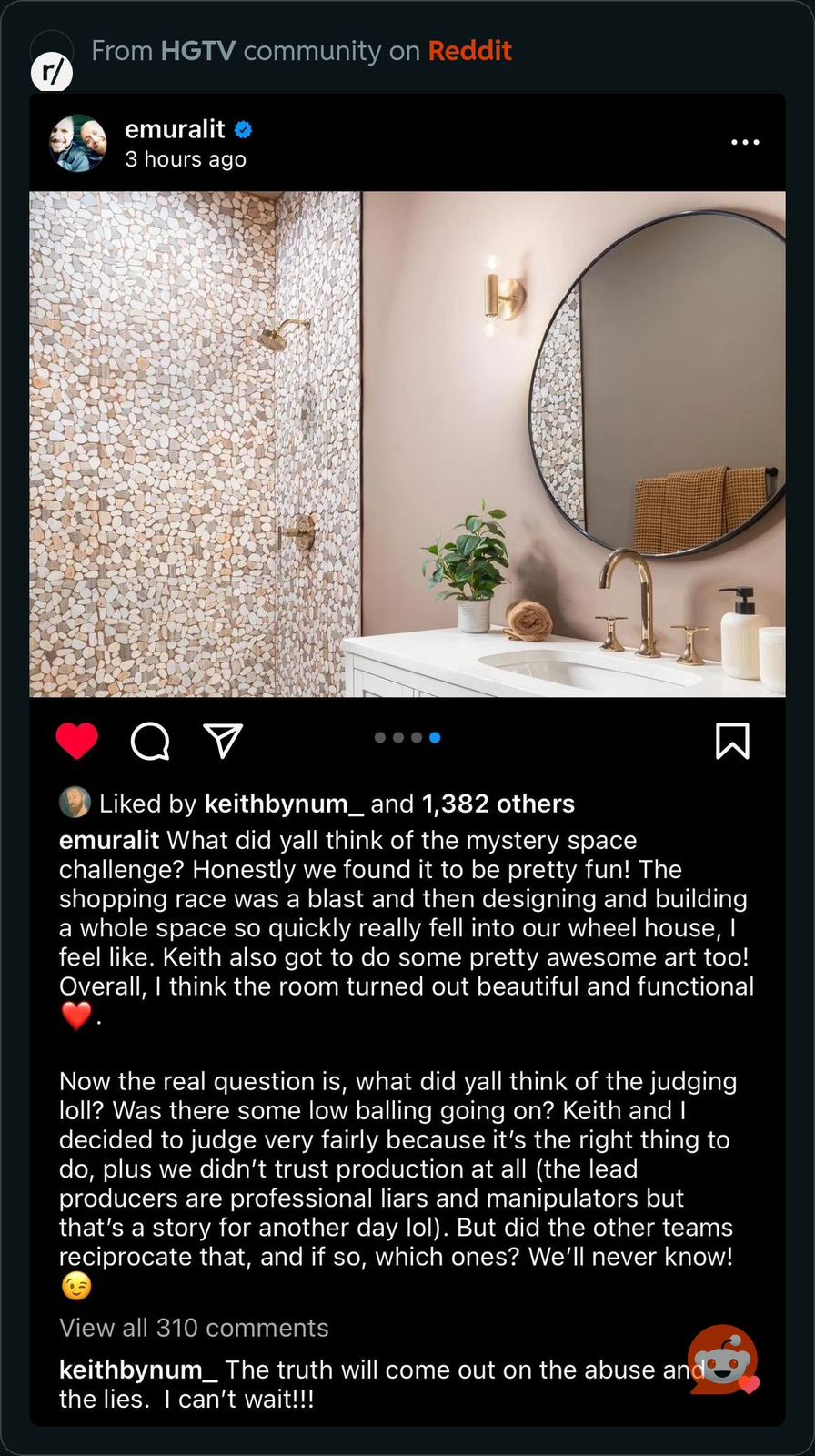 More broadly, viewers slammed the entire show as fake, scripted, and more focused on product placement than competition. Realistic-Lake5897 vented, “EVERY SHOW EVER BROADCAST ON HGTV IS SCRIPTED AND PERFORMED… fake competition with fake, injected drama.”
